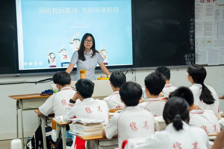 班会课上,各班班主任围绕“什么是校园欺凌”“常见的欺凌行为类型”“如何应对和防范校园欺凌”以及“校园欺凌的后果”等内容展开讲解,通过真实案例剖析,让学生深刻认识到校园欺凌的严重性及其对受害者造成的身体与心理伤害。老师们引导学生关注身边可能存在的欺凌现象,帮助大家准确识别言语侮辱、社交排斥、网络攻击、肢体暴力等多种欺凌行为,并传授了有效的应对策略和求助途径。
