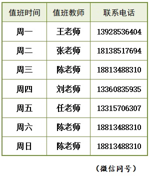 心理老师寒假期间值班安排表