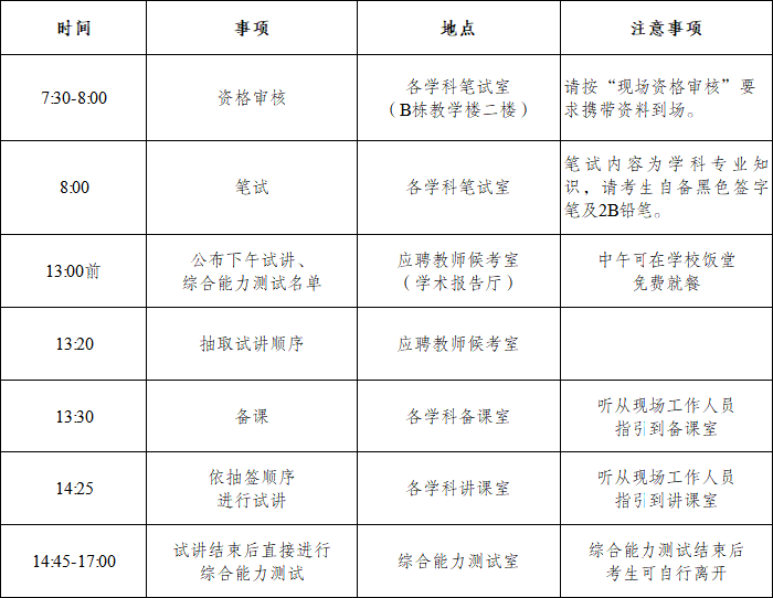 惠州市综合高级中学定于2026年2月8日(周日)举行优秀教师招聘考试,为方便应聘人员安排行程,现将招聘当天安排公布如下: