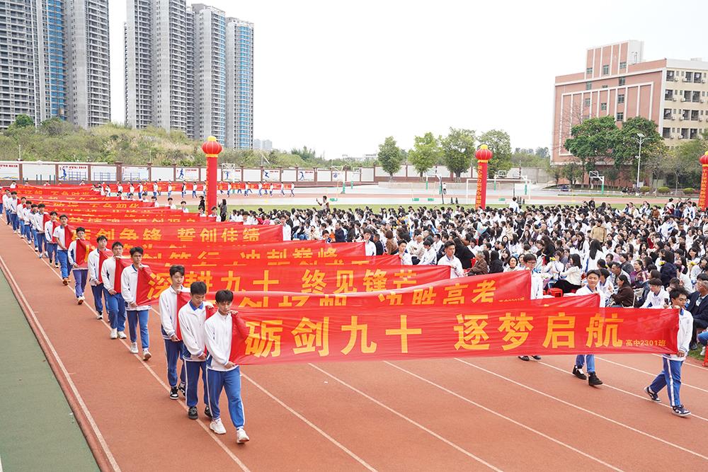 逐梦九十天,砺剑铸荣光。近日,我校高三师生及家长代表齐聚运动场,隆重举行高考90天誓师大会,以昂扬姿态吹响决胜高考的冲锋号角。