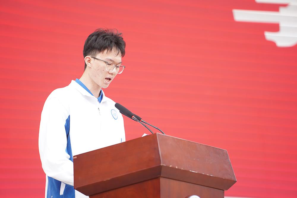 升国旗仪式结束后,学生代表谢奕朗率先发言,他分享了求学路上的成长与感悟,号召同学们锚定目标、以梦为马,用90天的全力以赴迎接六月的胜利,让青春在奋斗中绽放光芒。