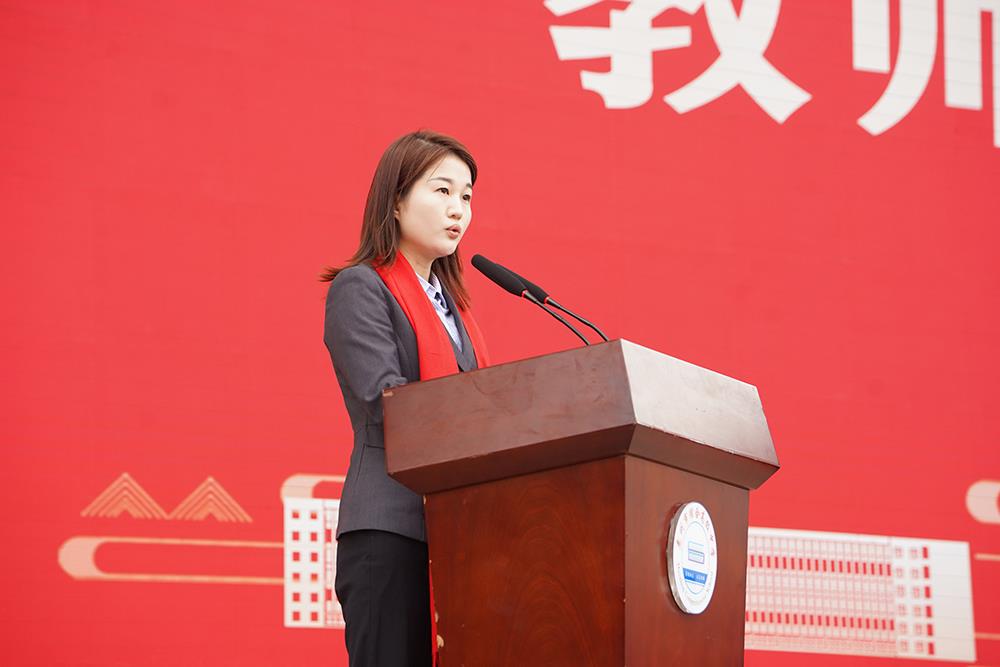 教师代表刘湘强调了90天冲刺的重要意义,勉励同学们全力以赴、奋勇冲刺。“老师们会始终站在你们身边,做你们最坚定的陪伴者、最靠谱的引路人”,温暖的话语让在场学子备受鼓舞。