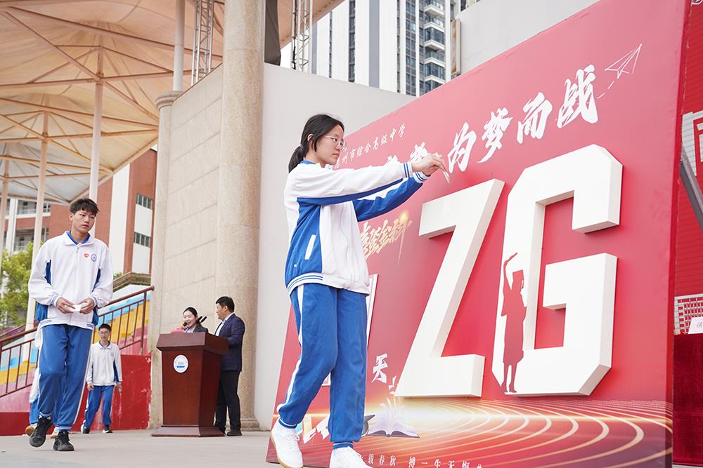 随后,校领导与高三教师为学子们系上满载祝福的红丝带,一句句暖心的鼓励、一个个温暖的拥抱,让现场处处洋溢着温情与奋进的力量。