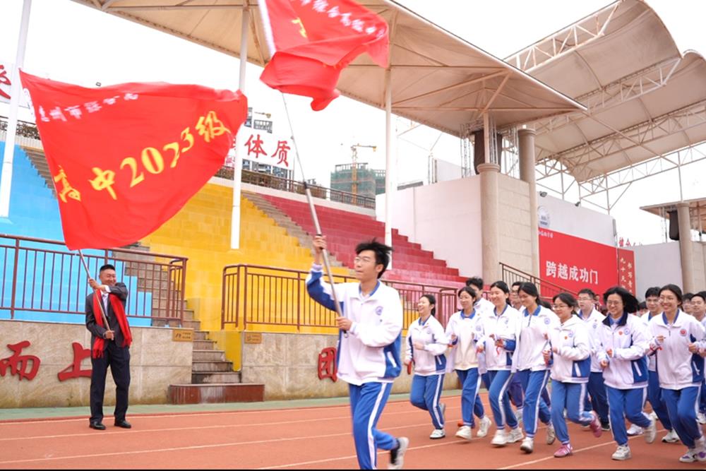 班主任方阵、班旗方阵、横幅方阵迈着整齐步伐依次入场,鲜艳的旗帜在风中猎猎作响,昂扬的口号响彻校园,展现出高三师生众志成城、勇攀高峰的坚定信念。