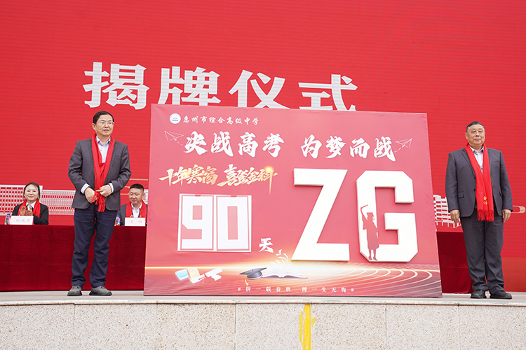 随后,侯宏泉总校长与廖其法校长共同登台,为高考90天倒计时牌揭牌,宣告着冲刺阶段的全面开启,也凝聚起家校、师生同心筑梦、共赴荣光的力量。