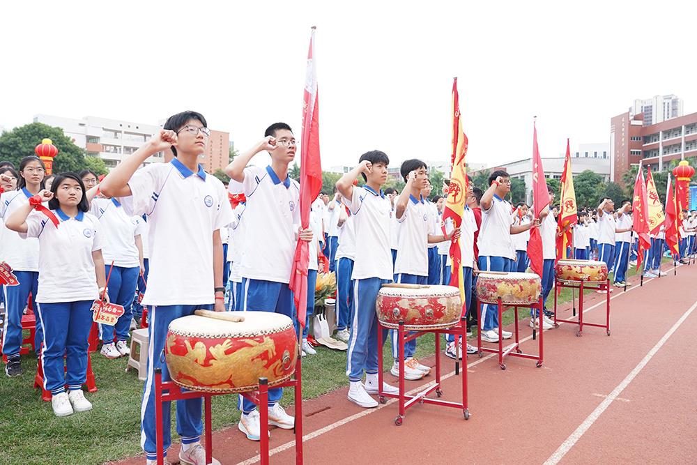 战鼓擂响,各班依次庄严宣誓。“争分夺秒,百炼成钢,全力以赴,铸我辉煌……” 铿锵誓言回荡全场,每个班级都展现出敢打敢拼、勇争上游的昂扬风貌。
