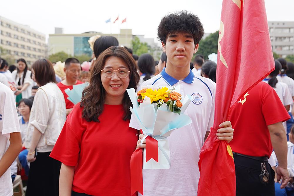 家长代表陆东川向默默耕耘、悉心教诲的全体教师致以诚挚谢意,并以“坚持、从容、陪伴”三个关键词鼓励学子坚守初心、从容备考。