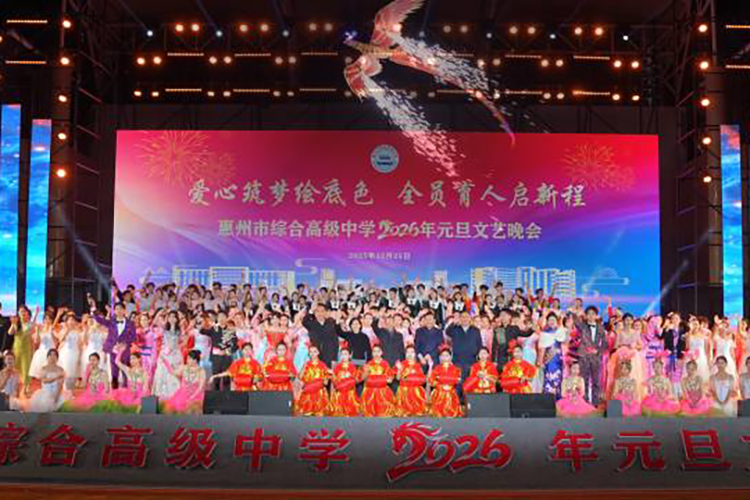 这次元旦晚会不仅是一场视听盛宴,更是惠州综合高中“全员育人”的生动实践。从传统戏曲到科创秀场,从爆笑情景剧到催泪师生合唱,满是巧思和诚意的节目全面展现了学校素质教育的实力和以爱育人的温度。新的一年,惠州综合高中师生将带着晚会传递的温暖与力量,怀揣梦想,奔赴下一场山海。