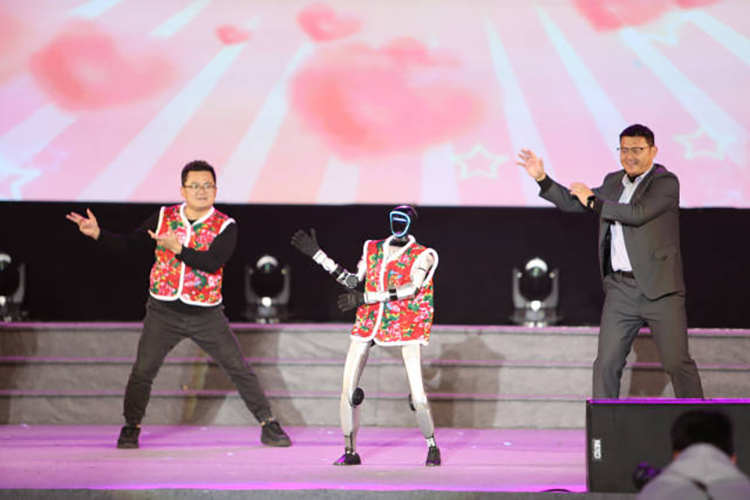 科技潮流与传统韵味在晚会上碰撞出奇妙的火花。戏曲《声声慢》将现场观众带入“青砖伴瓦漆,白马踏新泥”的诗意情境。互动科技环节《机器人》把晚会带入“欢乐模式”。来自宇树科技的春晚网红机器人“小宇”身穿花袄,随音乐精准卡点跳舞、转圈,动作流畅且萌趣十足。老师们亲自上阵与“小宇”切磋舞姿,老师们略显“笨拙”却全力投入的模样,让台下笑声不断、掌声雷动。