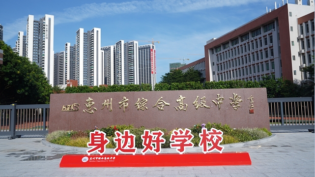 惠州市综合高级中学坐落在惠州市惠城区东江新城奔腾路1号,是一所高起点、全寄宿的民办完全中学。学校成立于2013年,校园环境优美,办学条件一流,占地面积12万平方米,建筑面积13.8万平方米,在校学生6300人。我们在粤港澳耕耘,在大湾区起航。