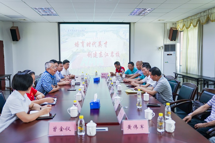 7月16日下午,龙川一中工会主席钟学明等一行到我校参观交流。我校董事长郑安华,校长戴立波,工会主席郑宇等校领导出席交流活动。