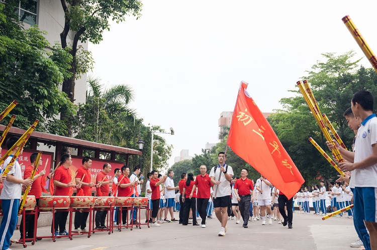 为鼓舞同学们的士气,激励他们以最佳状态迎战体育中考,当天上午,学校举行了简短而热烈的送考仪式。出征前,校务委员余树君作动员讲话,鼓励同学们发扬拼搏精神,全力以赴,奋勇争先,再创佳绩。初一、初二年级师生分列在主校道两侧,为出征的考生们加油打气,与他们击掌拥抱。在热烈的掌声和助威声中,初三学子意气风发,昂首前行。