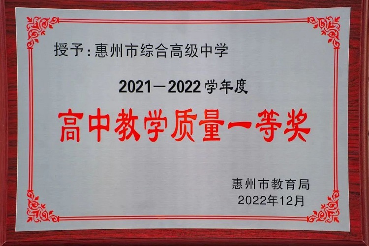 在惠州市2023年教育高质量发展大会上,我校再度荣获“高中教学质量一等奖”,是2021—2022学年度市直学校中唯一获奖的民办学校,也是连续六年荣获这一重磅奖项。沉甸甸的荣誉再次擦亮“培养能力全市第一”的金字招牌,以实力再次证明“身边好学校”的口碑名副其实。