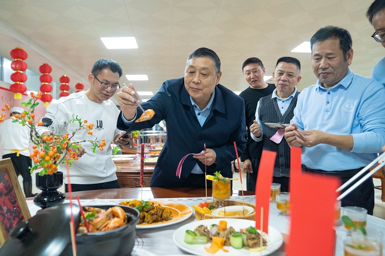 “龙腾虎跃”“花开富贵”“柿柿如意”……一道道丰富多样、寓意十足的菜式相继出炉,散发着诱人的香气,令人垂涎欲滴,大家忍不住直呼:“香,真香!”精心烹饪的20余道美味佳肴中,涵盖煎炒炸炖烤、摆雕配缀润等技巧,荤素搭配,色香味俱全,展示了“综高厨王”扎实的功底和高超的技艺。
