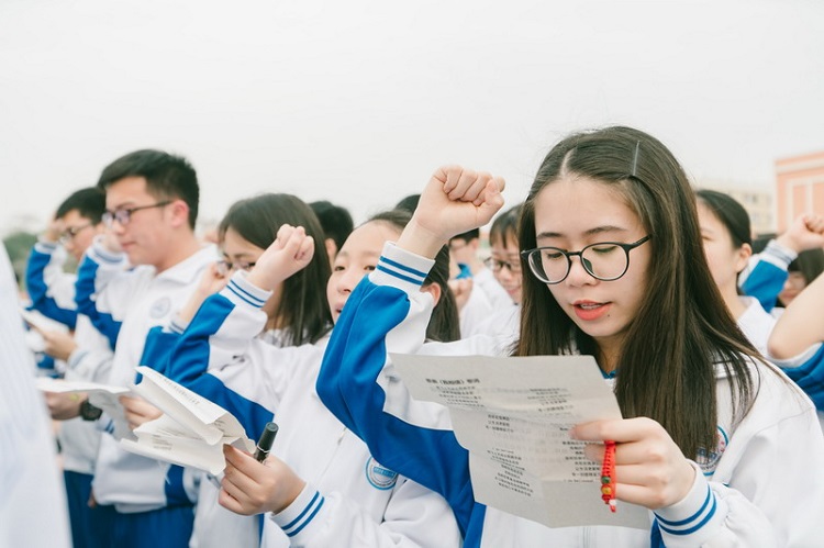 百日备战高考,不仅仅是考生的冲锋陷阵,更是学校、老师、家长、学生多方的帷幄运筹。高三(1)班谭振宇妈妈作为家长代表发言,激励孩子们:“坚守自己的理想,坚定自己脚步,坚持就是胜利!”全体高三教师则在这个时刻庄严宣誓:“一百天,我要用热情激发学生的斗志,用拼搏提升学生的成绩,用热血成就学生的梦想!”全体高三学子则用齐声呐喊回应父母的叮咛、老师的付出,“专注百日,勇攀高峰;奋斗百日,谁与争锋;决战百日,我必成功!”铿锵的誓言,让在场每个人都热血沸腾。