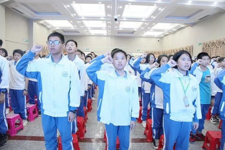 宣讲会现场,杨宗老师还与同学们进行了现场互动,言传身教防溺水安全知识:请同学们现场体验水下憋气(溺水)的感觉,教大家如何挑选适合游泳圈,如何利用身边的简单工具正确施救……生动的讲解和演示牢牢地吸引着大家的注意力,点燃了同学们参与的热情。最后,全体师生起立宣誓,珍爱生命,远离危险,宣讲会在庄严的宣誓声中结束。