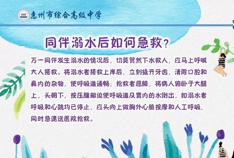 此次防溺水安全教育活动是惠州综合高中安全教育系列活动之一,这场生动有趣的宣讲会使在场师生受益良多,切实增强了大家防溺水的安全防范意识,有利于提高同学们的自护自救能力,保护其生命安全。