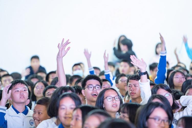 节目竞演之外,还穿插了各种互动环节,学校外教和英语老师提出一个问题,台下同学纷纷举手抢答,晚会现场气氛异常热烈。