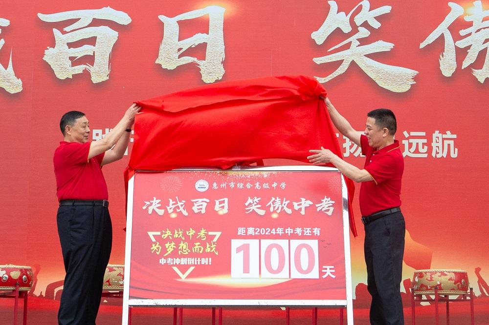 在全体师生和家长朋友们的共同见证下,校长廖其法、义务教育部副校长张志云共同为中考百日倒计时牌揭幕,标志着冲刺中考的百日征程正式启航。