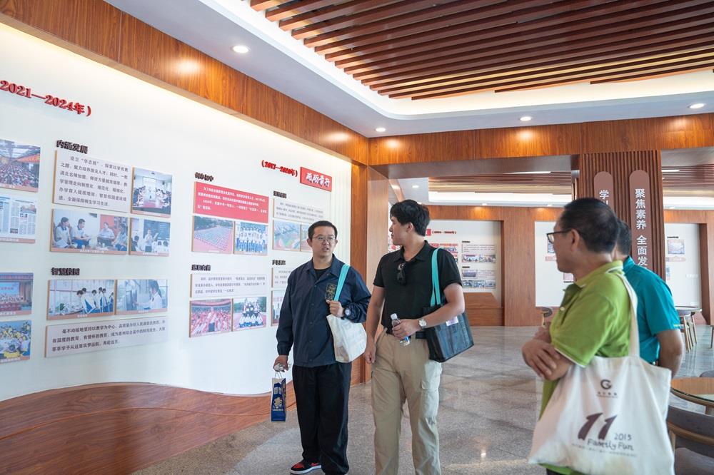 为欢迎历届校友回家,学校提前在校园各处布置了与国庆、相聚相关的打卡点。校友们与老师亲切交流,并在老师的陪同下漫步校园,参观运动场、智慧图书馆、体育馆、文化连廊、教室等场所,在各打卡点合影留念,走进“桂园”饭店就餐,回味青葱岁月和校园生活,感受母校日新月异的变化。