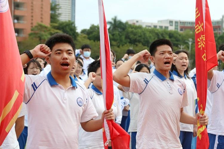 战旗所至,所向披靡。行政领导为高三年级各班班主任授旗,班主任们接过班旗振臂挥舞,传递激情与梦想,彰显用心陪伴、全力护航的决心。