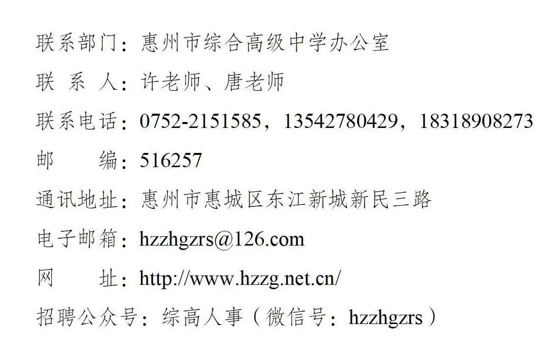 面试时间定于2024年12月上旬,面试地点设在惠州市综合高级中学校内,请通过资格审核的应聘者带上本人的身份证,按时到达面试地点(具体时间及地点以短信通知为准,请保持电话畅通)。