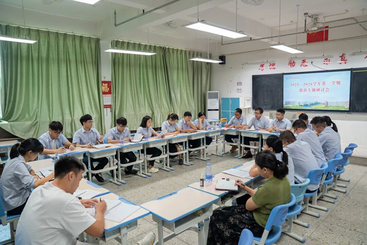 在全体会议上,各年级代表依次汇报德育工作思路。初一温玉娇老师提出“以量化为基,以方法为翼”的策略,通过解读《德育量化纳入学生考核办法》、落实 “六步学习法”预习与复盘环节,让抽象德育具象化;初二黄彬发老师以“以爱为育人底色,宽严相济”为主题,通过学生成长案例,阐释“宽在心态沟通,严在规则底线”的育人智慧;初三古怡情老师构建“时间规划、行为习惯、文明礼貌、时间管理、目标管理”五维宽严平衡体系,针对体育训练与文化复习实施“前期严夯实、后期宽调适”的阶段性策略;高一查振华老师则围绕“自律与他律平衡”,分享组建班级“共建、共享”团队的实践,引导学生从“被动约束”转向“主动担责”;高二张思华老师从“巧立班规、慈爱管理、启智践行、铸就班魂”四个方面,分享民主制定《班级公约》、设置“天使信箱”、组建“师生自主学习小组”的经验;高三赖育文老师则以平行班管理为例,分享“用好班干部 = 管好班”的实践,通过“操行积分银行”“微岗位认领”“分层六步学习法”,让学生在自主管理中提升责任意识与学习能力。鲜活的案例、可落地的策略引发全场共鸣。