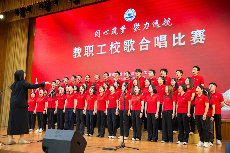 比赛现场高潮迭起,精彩纷呈。各参赛队伍依次登场,将满腔热情融入校歌《筑梦远航》的演绎中。每一句歌词、每一段旋律,都凝聚着教职工对教育初心的坚守与对学校的热爱。