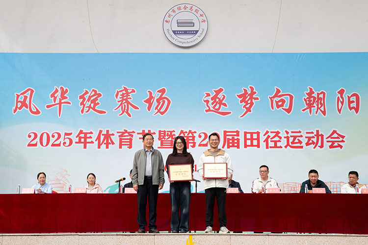 闭幕式上,校领导依次为获奖集体颁奖,表彰他们在本届运动会中的优异表现。奖项涵盖最佳团队、最佳入场式,以及初中部、高中部各年级团体总分前八名等。