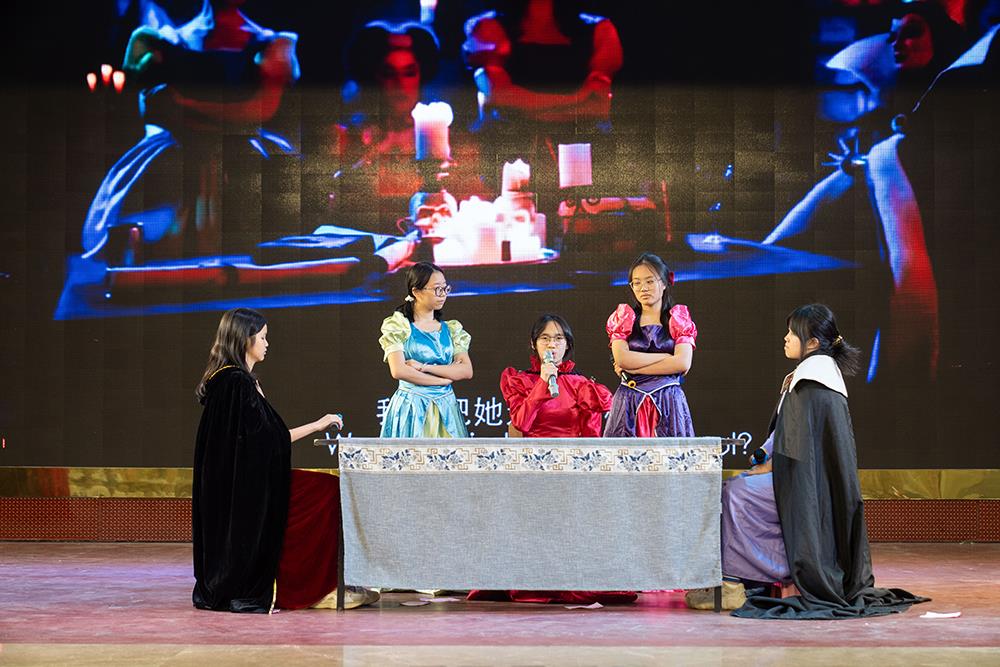 “Vibrant English,Bright Youth”外语才艺快闪活动在小礼堂惊艳亮相。同学们在轻松的氛围中大胆展示外语才能,有的深情演唱经典外语歌曲,歌声悠扬;有的演绎英文情景短剧,幽默风趣;有的展示即兴口语对话,反应敏捷。亮眼的表现、飞扬的青春风采感染着现场每一位观众。