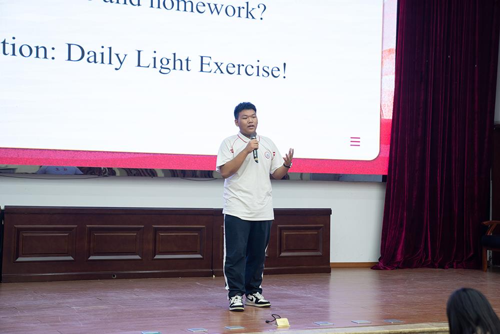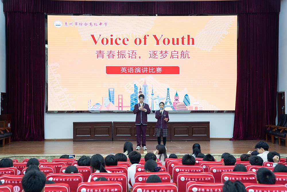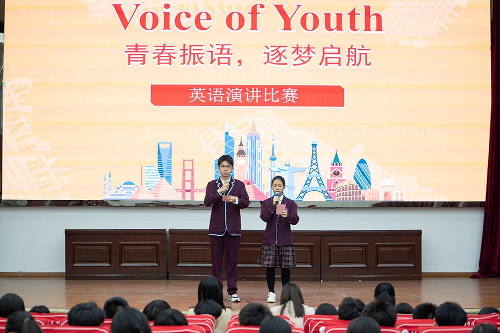 “Voice of Youth”英语演讲比赛中,学子们用流利地道的英语表达观点、抒发情怀。演讲主题涵盖文化交流、环境保护、青春奋斗等方面,同学们发音标准、逻辑清晰,时而慷慨激昂,时而温情脉脉,举手投足间尽显自信风采。当天,两获市级英语比赛一等奖的李春蓓同学,到场为参赛学子作示范演讲,也为比赛增添了亮点。