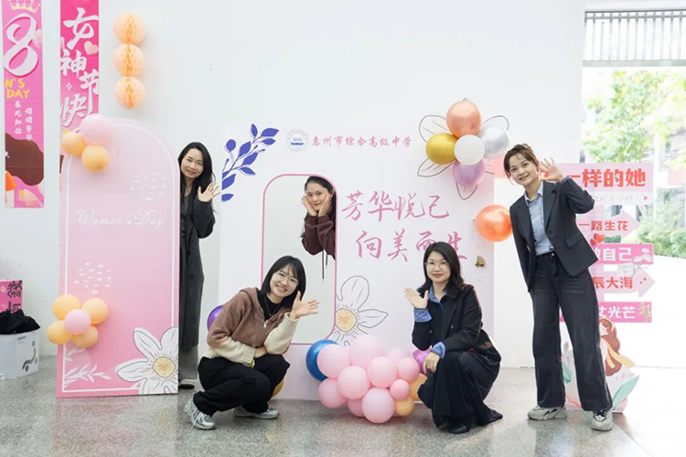 欢乐之外,更有温情相伴。活动现场专门设置了节日打卡背景板,粉色的装饰、温馨的标语,成为了老师们拍照留念的绝佳场景。大家纷纷驻足,或单人定格美好,或三五成群合影留念,用镜头记录下这个属于自己的幸福时刻。
